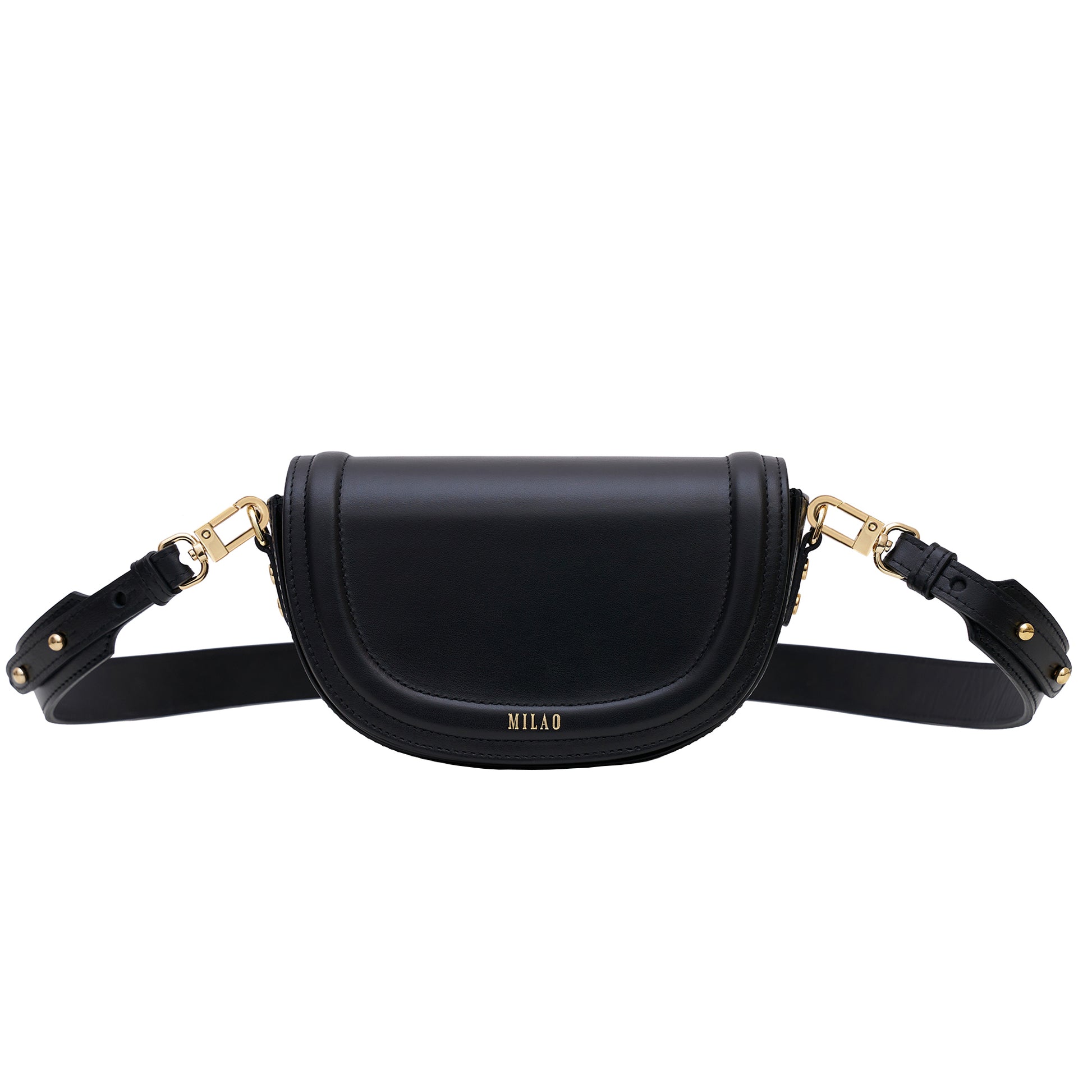 MINI MILA torebka mini czarna skórzana półksiężyc
