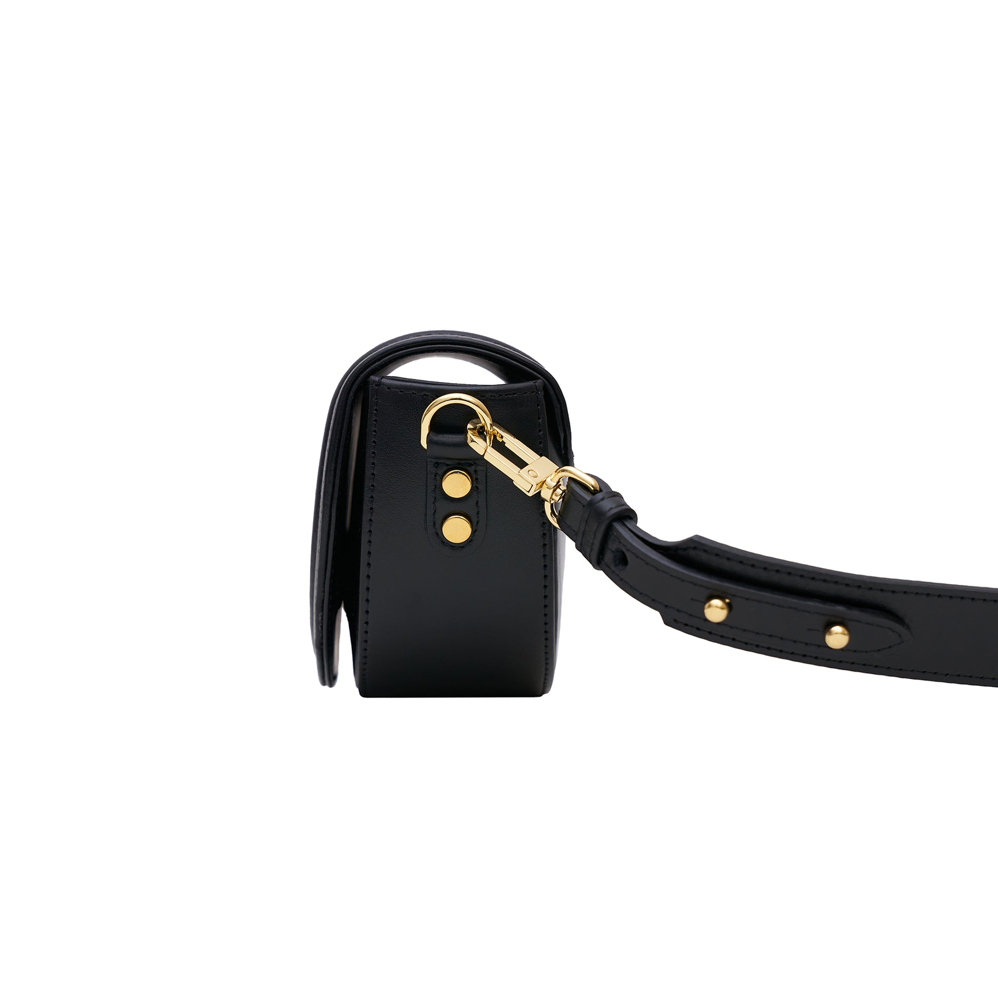Torebka mini Mila to mniejsza wersja naszego bestsellerowego modelu Mila. Została wykonana z naturalnej, włoskiej skóry bydlęcej w kolorze czarnym. Środek wykończony jest czarną, bawełnianą podszewką. Mila to torebka listonoszka, typu półksiężyc. Zamykana jest na dwa kryte magnesy. W środku posiada jedną dużą komorę i jedną otwartą kieszonkę. Do noszenia na ramieniu lub na ukos. Do torebki dołączony jest odpinany, regulowany na knopiki pasek skórzany. Złote okucia.
